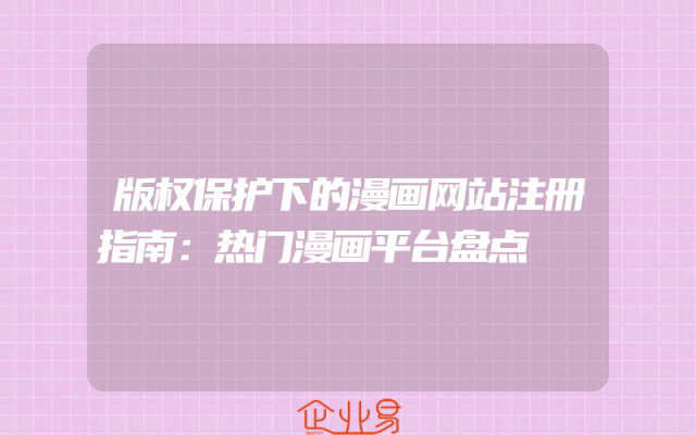 - 版权保护下的漫画网站注册指南:热门漫画平台盘点一、引言随着网络的发展与普及,漫画作为一种深受大众喜爱的文化形式,其线上传播与消费已成为主流。然而,在享受漫画带来的乐趣的同时,我们也必须重视版权问题。在此,为大家介绍一些热门漫画平台的注册指南