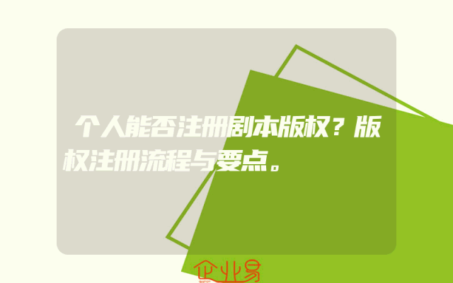- 个人能否注册剧本版权?版权注册流程与要点。