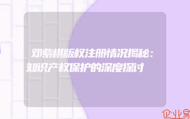 - 邓紫棋版权注册情况揭秘:知识产权保护的深度探讨
