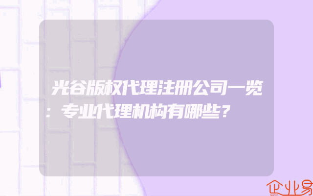 - 光谷版权代理注册公司一览:专业代理机构有哪些?