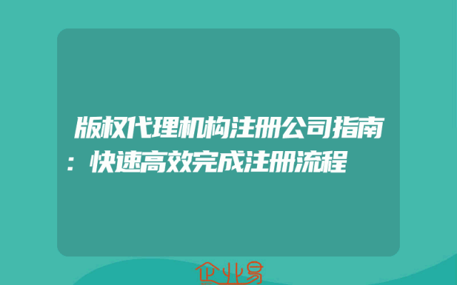 - 版权代理机构注册公司指南:快速高效完成注册流程