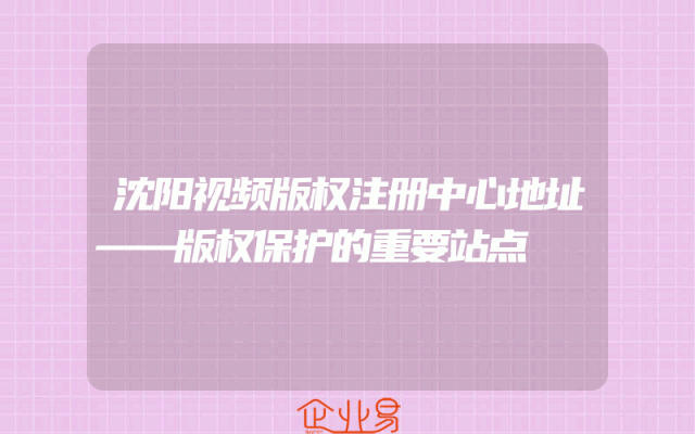 - 沈阳视频版权注册中心地址——版权保护的重要站点
