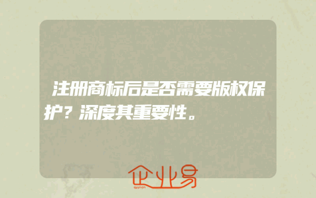 - 注册商标后是否需要版权保护?深度解析其重要性一、注册商标与版权保护的基本概念首先,我们需要明确注册商标和版权保护的基本含义及其重要性。注册商标是指商标所有人将其商标按照法定程序向商标局申请注册,从而获得商标专用权的行为。商标的主要功能是识别