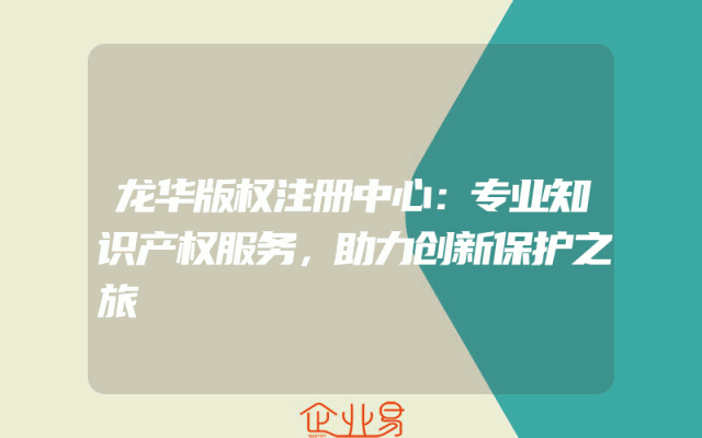 - 龙华版权注册中心:专业知识产权服务,助力创新保护之旅