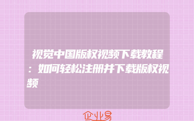 - 视觉中国版权视频下载教程:如何轻松注册并下载版权视频一、视觉中国网站简介视觉中国作为一家知名的创意图片和视频分享平台,拥有庞大的版权资源。在这里,用户可以找到各种类型的版权视频,满足不同的需求。