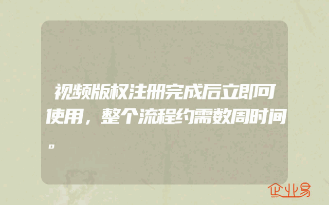 - 视频版权注册完成后立即可使用,整个流程约需数周时间。