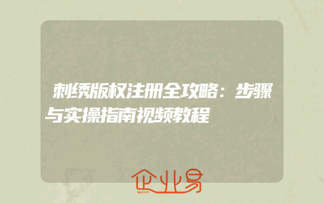 - 刺绣版权注册全攻略:步骤与实操指南视频教程