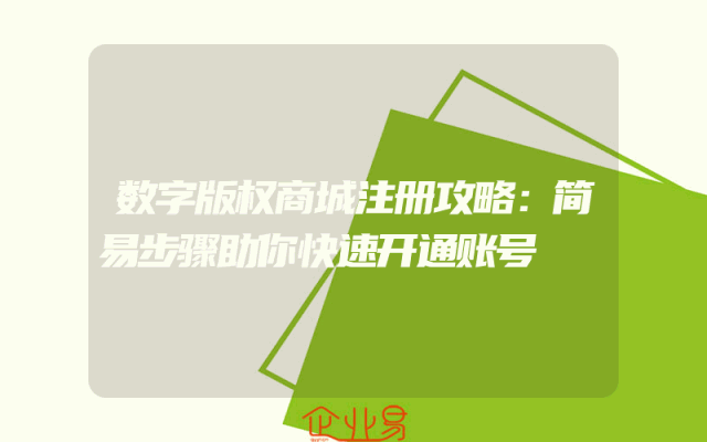 - 数字版权商城注册攻略:简易步骤助你快速开通账号一、了解数字版权商城在开始注册数字版权商城账号之前,我们需要对数字版权商城有一个基本的了解。数字版权商城是一个专注于版权交易、版权保护和相关服务的平台,为创作者、企业和个人提供一站式的版权解决方