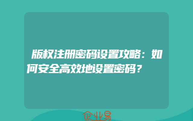 - 版权注册密码设置攻略:如何安全高效地设置密码?