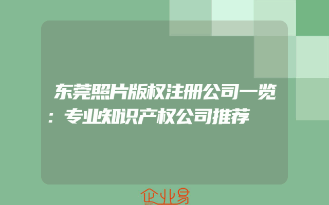 - 东莞照片版权注册公司一览:专业知识产权公司推荐
