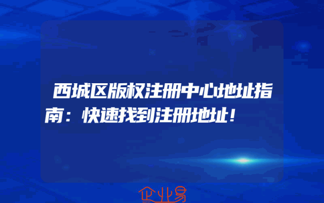 - 西城区版权注册中心地址指南:快速找到注册地址!
