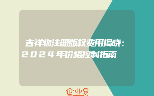 - 吉祥物注册版权费用揭晓:2024年价格控制指南