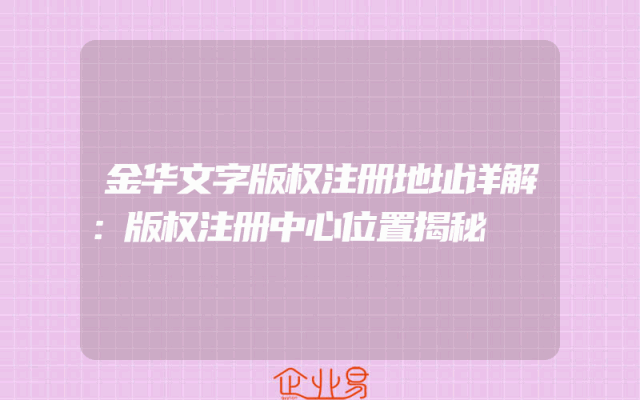 - 金华文字版权注册地址详解:版权注册中心位置揭秘