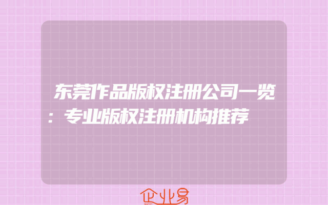 - 东莞作品版权注册公司一览:专业版权注册机构推荐