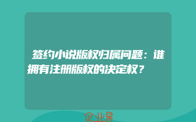 - 签约小说版权归属问题:谁拥有注册版权的决定权?