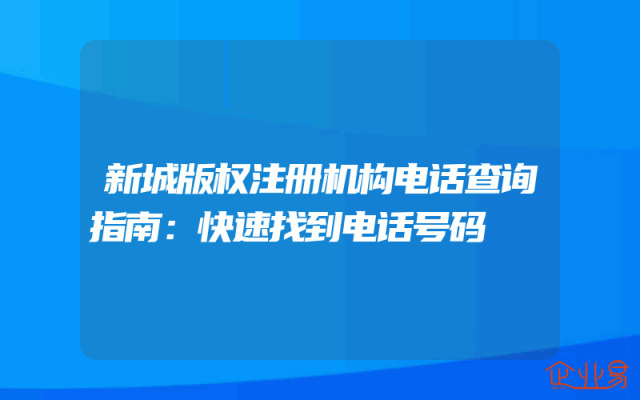 - 新城版权注册机构电话查询指南:快速找到电话号码