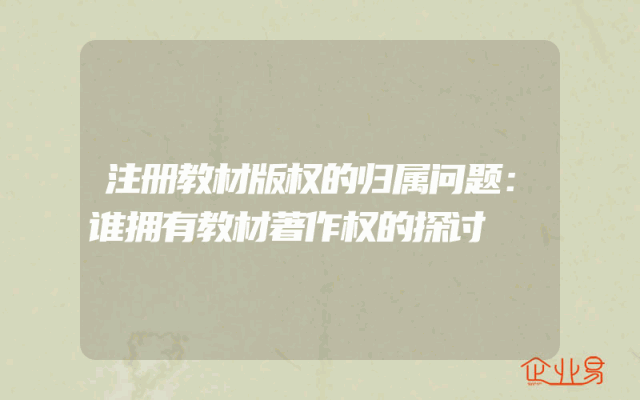 - 注册教材版权的归属问题:谁拥有教材著作权的探讨