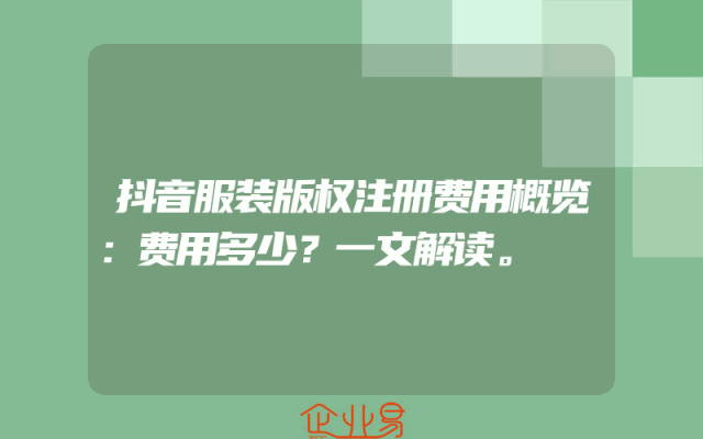 - 抖音服装版权注册费用概览:费用多少?一文解读。