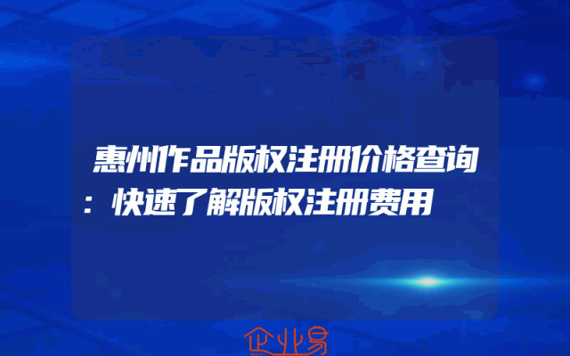 - 惠州作品版权注册价格查询:快速了解版权注册费用
