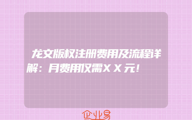 - 龙文版权注册费用及流程详解:月费用仅需XX元!