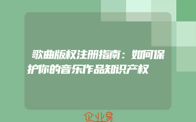 - 歌曲版权注册指南:如何保护你的音乐作品知识产权了解音乐作品知识产权的重要性在当今音乐产业蓬勃发展的时代,保护音乐作品知识产权显得尤为重要。音乐创作是一项充满心血的艺术工作,而每一首歌曲背后都蕴含着作者的智慧与努力。因此,保护音乐作品版权不仅