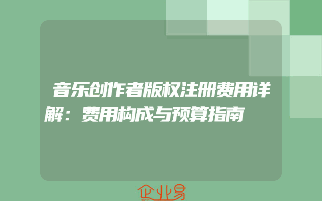 - 音乐创作者版权注册费用详解:费用构成与预算指南