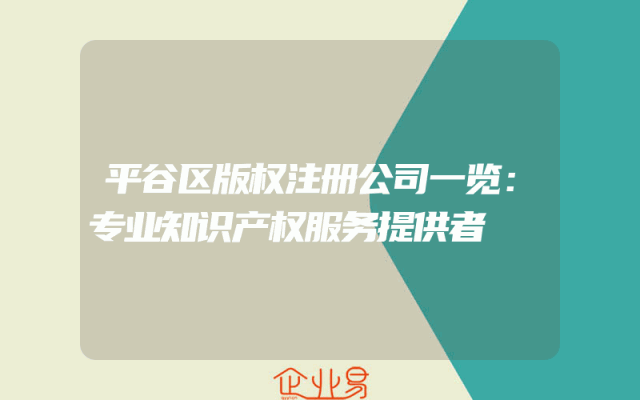 - 平谷区版权注册公司一览:专业知识产权服务提供者
