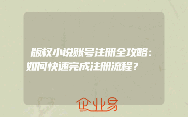 - 版权小说账号注册全攻略:如何快速完成注册流程?