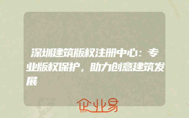 - 深圳建筑版权注册中心:专业版权保护,助力创意建筑发展