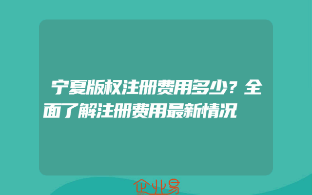 - 宁夏版权注册费用多少?全面了解注册费用最新情况