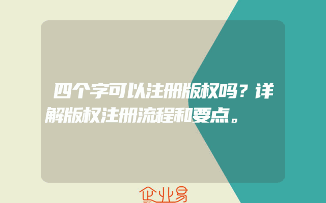 - 四个字可以注册版权吗?详解版权注册流程和要点。