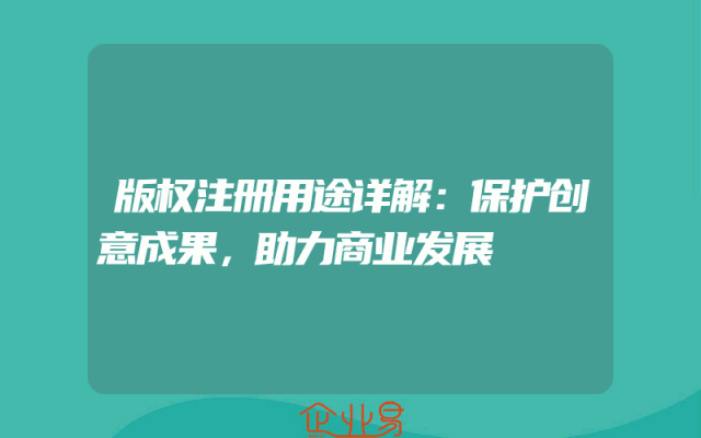 - 版权注册用途详解:保护创意成果,助力商业发展