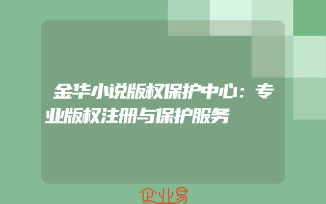 - 金华小说版权保护中心:专业版权注册与保护服务
