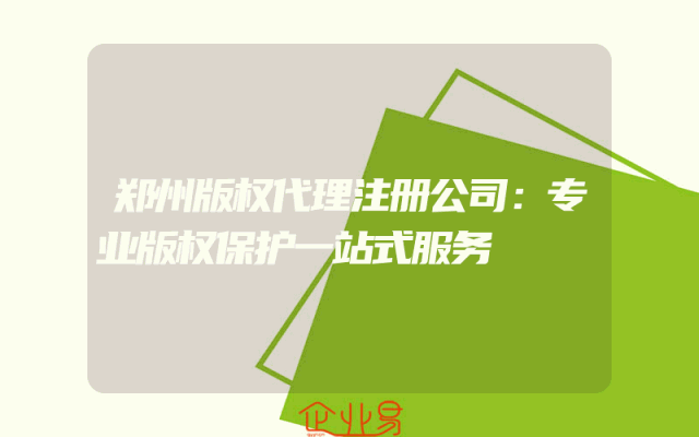 - 郑州版权代理注册公司:专业版权保护一站式服务
