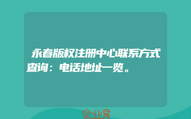 - 永春版权注册中心联系方式查询:电话地址一览。