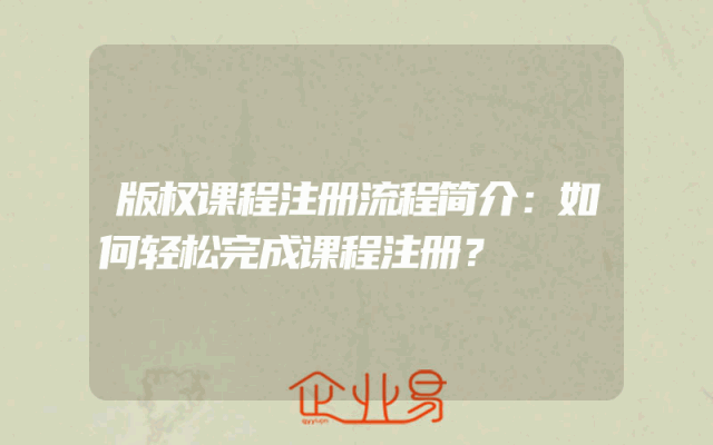 - 版权课程注册流程简介:如何轻松完成课程注册?