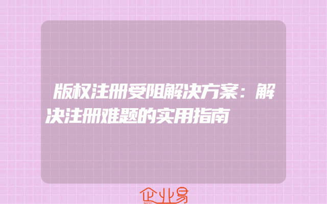 - 版权注册受阻解决方案:解决注册难题的实用指南在进行版权注册时,有时会遇到各种预料之外的阻碍。面对这些难题,应该如何应对和解决呢?以下是关于版权注册受阻的一些实用解决方案。版权申请的常见问题