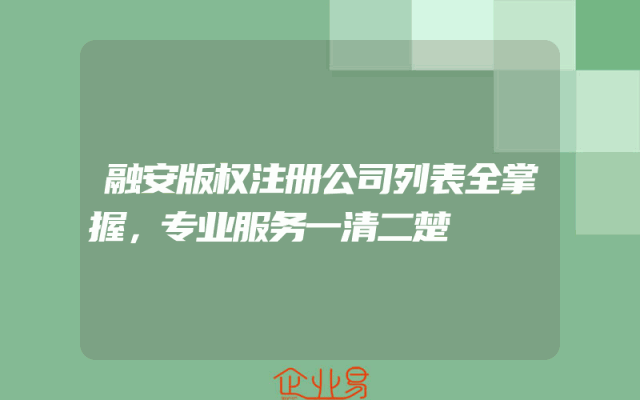 - 融安版权注册公司列表全掌握,专业服务一清二楚