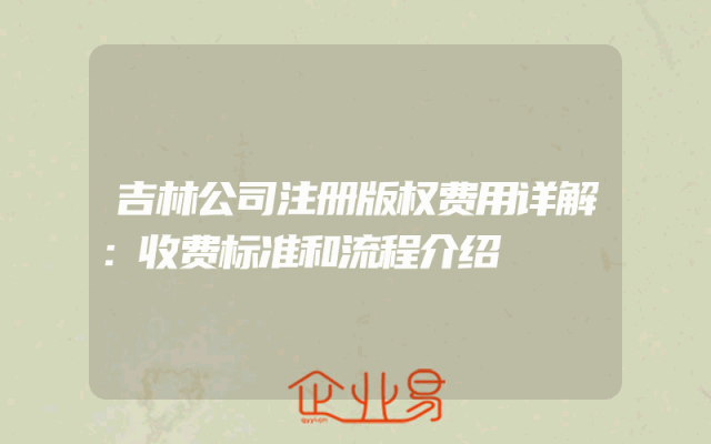 - 吉林公司注册版权费用详解:收费标准和流程介绍