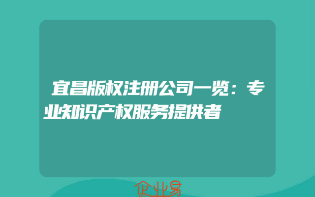 - 宜昌版权注册公司一览:专业知识产权服务提供者