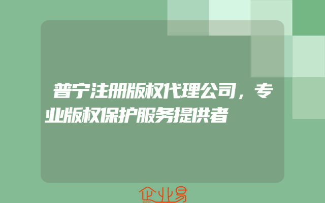 - 普宁注册版权代理公司,专业版权保护服务提供者