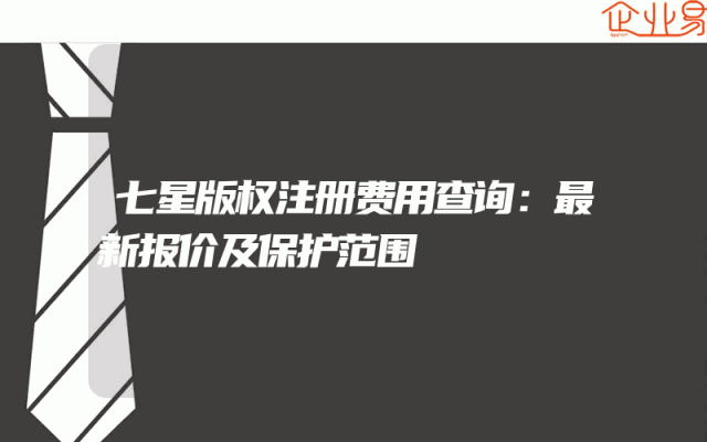 - 七星版权注册费用查询:最新报价及保护范围解析一、七星版权注册费用概述在当今知识产权保护日益重要的时代,版权注册成为许多创作者和企业保护自身权益的重要方式。七星版权作为一种重要的版权服务品牌,其注册费用也是创作者们关注的焦点之一。二、最新报价