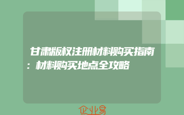 - 甘肃版权注册材料购买指南:材料购买地点全攻略