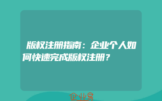 - 版权注册指南:企业个人如何快速完成版权注册?