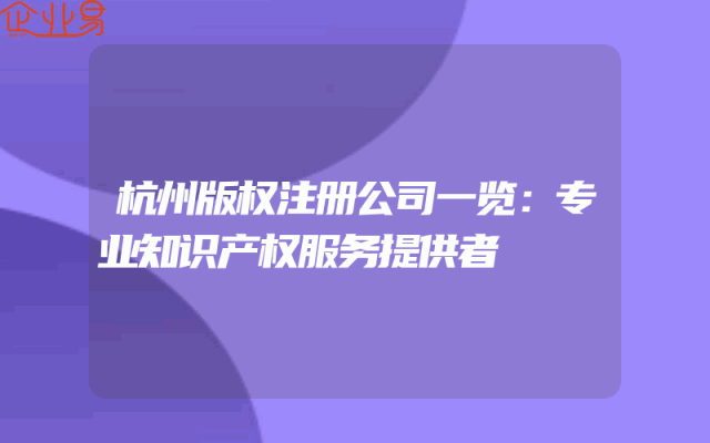 - 杭州版权注册公司一览:专业知识产权服务提供者