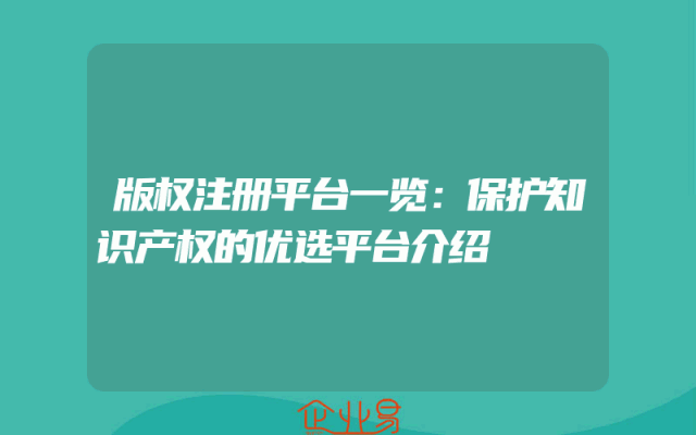 - 版权注册平台一览:保护知识产权的优选平台介绍