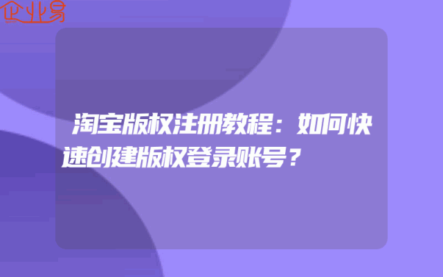 - 淘宝版权注册教程:如何快速创建版权登录账号?