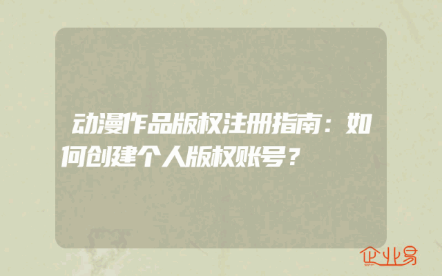 - 动漫作品版权注册指南:如何创建个人版权账号?