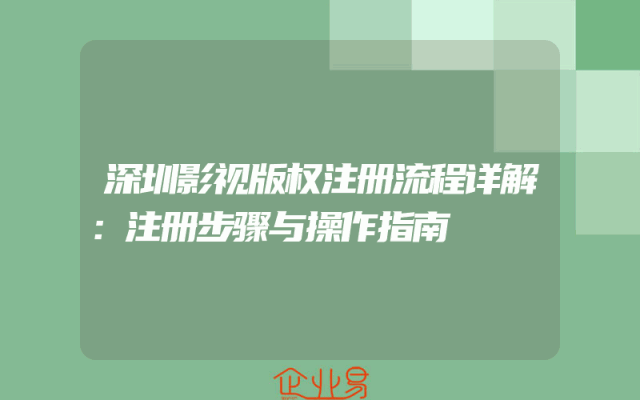 - 深圳影视版权注册流程详解:注册步骤与操作指南