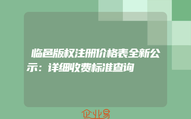 - 临邑版权注册价格表全新公示:详细收费标准查询